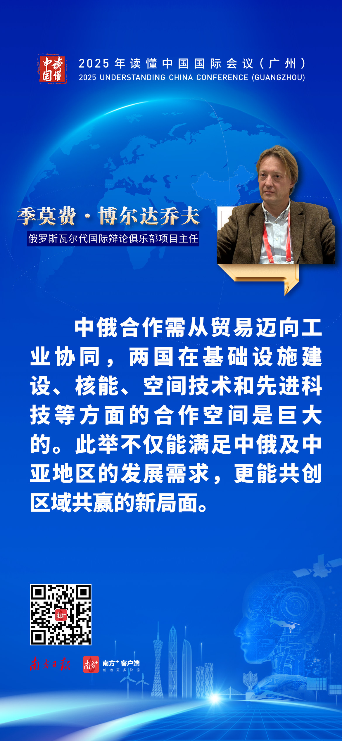 11月30日至12月2日,2025年“读懂中国”国际会议在广州举办。俄罗斯瓦尔代国际辩论俱乐部项目主任季莫费·博尔达乔夫在现场接受采访表示,中国与俄罗斯在基础设施建设、人工智能等工业领域的合作空间广阔,两国应持续推进多领域深度协作,共同推动全球多极化进程健康发展。